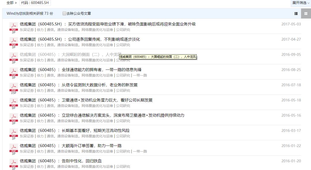 从wind来看,近几年写信威集团研报最多的是东吴证券的徐力。