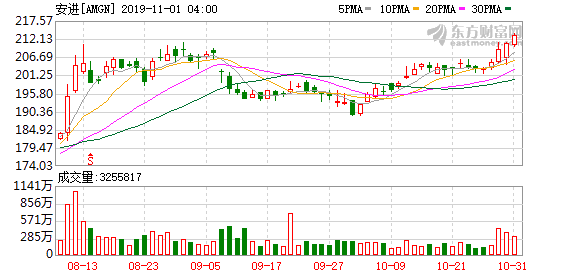 10月31日美股收盘,安进股价报213.25美元,总市值约1267亿美元,在全球药企中市值排名第九。
