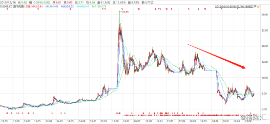 其二,股价萎靡不振。2018年1月2日至2019年1月2日,奥马电器股价一整年都处于震荡下行的局面,累跌超56%。截至今日其股价不到6元,较曾经股价最高值26.85元已经下跌了78%。