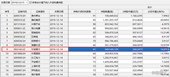 据Wind显示,宁波银行被外资(陆通通+QFII)持有268.24亿元,位列外资布局A股市场的第9大重仓股,高于中国国旅、长江电力、上海机场等传统优质白马股,不过仍然低于招商银行。