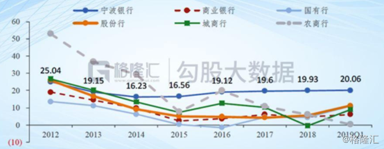 2015年,由于降息、市场化机制、GDP增速下滑等多方面原因,导致银行业平均利润增速仅有2.43%,即便2017-2018年,增速仅仅回升维持在5%左右,比2014年及以前的双位数增长相去甚远。但宁波最近5年归母净利润同比增速分别为16.1%、16.29%、19.35%、19.5%、19.85%。