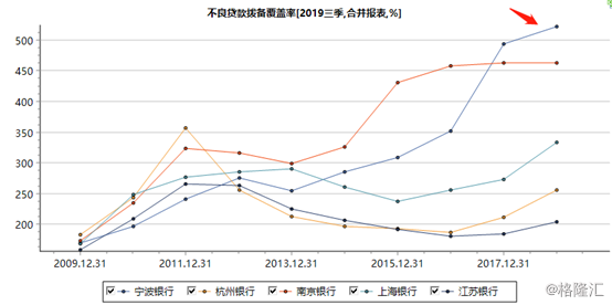 不良贷款拨备覆盖率方面,今年前三季度宁波银行为525.49%,还高于招商银行的415%,远远高于国有5大行。