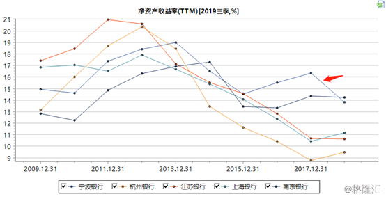 最后,我再来看投资者对于企业经营的终极评级指标——ROE。截止三季度末,宁波银行ROE为13.33%,位列所有银行第6名,高于国有5大行。并且这个数据没有考虑不良贷款拨备率的因素。