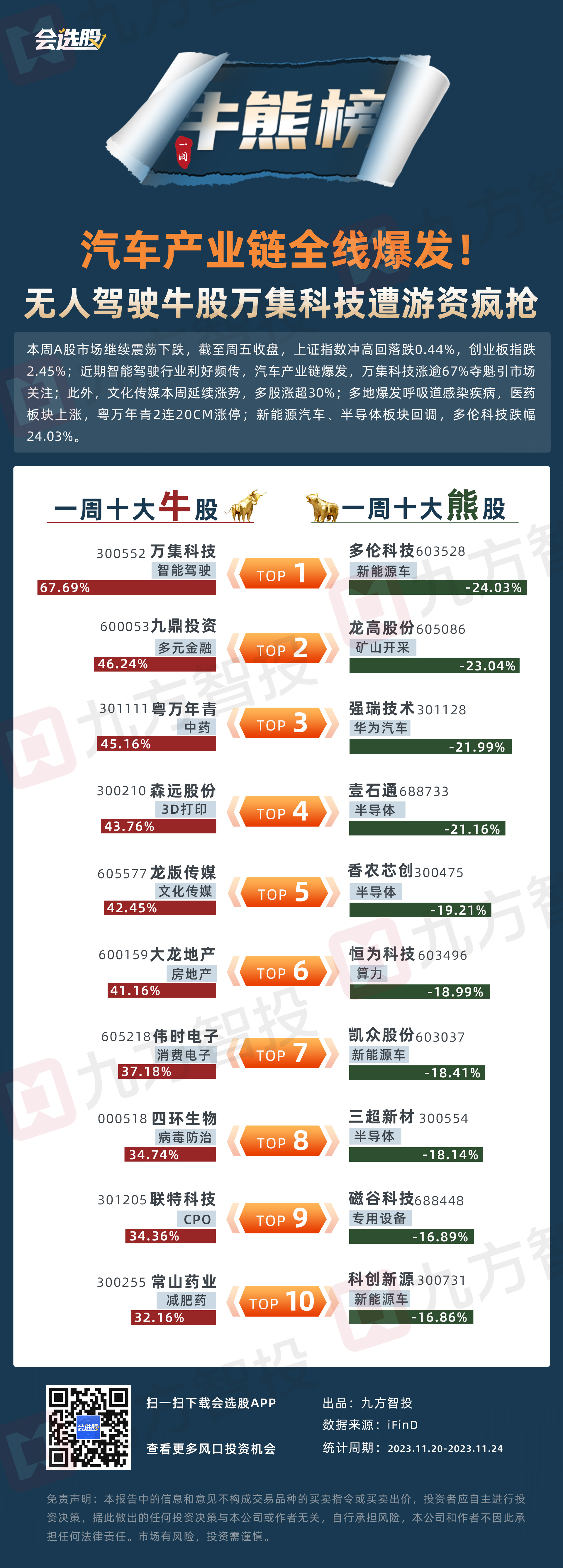 图说A股|一周牛熊榜:汽车产业链全线爆发!无人驾驶牛股逼近翻倍