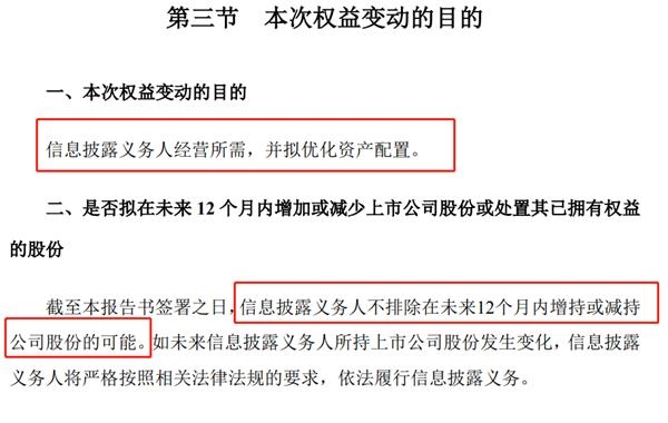 对于本次权益变动的目的,中兴新表示,经营所需,并拟优化资产配置。另外,中兴新表示,不排除在未来12个月内增持或减持上市公司股份的可能。