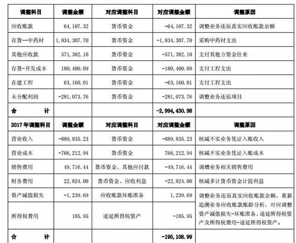 2018年报显示,ST康美2016-2018年经调整后的归母净利润分别为18.42亿元、21.50亿元和11.35亿元,本年业绩出现大幅下滑;调整后的经营活动现金流量净额分别为-23.05亿元、-48.40亿元和-31.92亿元,近三年持续大额支出。