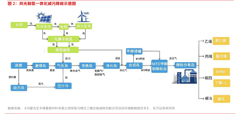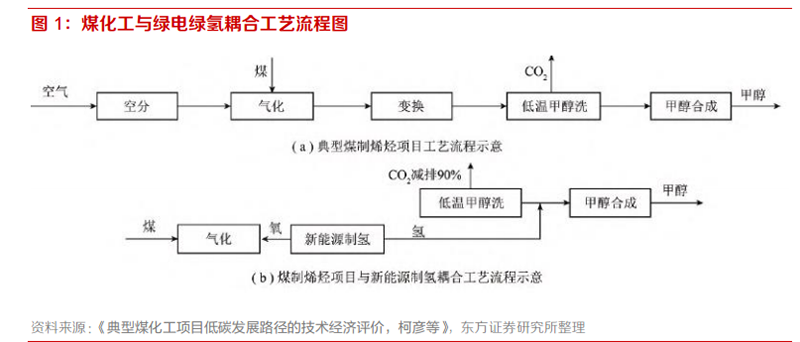 宝丰能源介绍,高能耗及高排放一直制约煤化工行业扩张,而绿氢耦合模式有望打破瓶颈,开辟一条低排放的煤化工生产路径。
