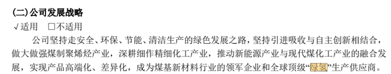目前,宝丰能源的发展战略中,正试图推动新能源产业与现代煤化工产业融合发展,实现产品高端化、差异化,成为煤基新材料行业的领军企业和全球顶级“绿氢”生产供应商。