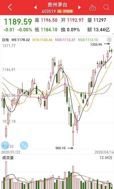 昨日贵州茅台盘中股价重上1200元大关,收盘报1189.6元,市值达到1.49万亿元,超过工商银行A股市值1.38万亿元,位居A股市值榜首位。去年11月21日,贵州茅台曾经就超越过工商银行的市值,问鼎A股市值榜首。彼时,贵州茅台市值15468亿元,工商银行市值15449亿元(剔除H股市值)。