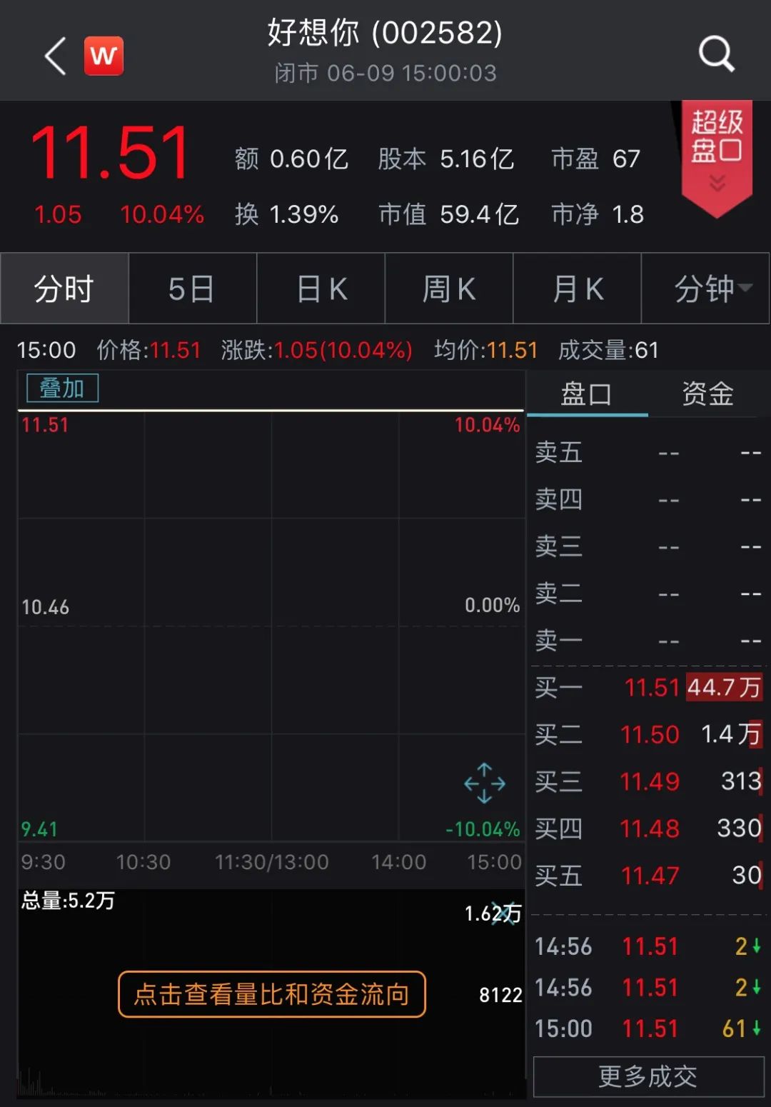 没有任何悬念,6月9日,“枣业第一股”好想你开盘即封死在涨停板上,最终报收11.51元,换手率为1.39%,总成交额5974.7万元。