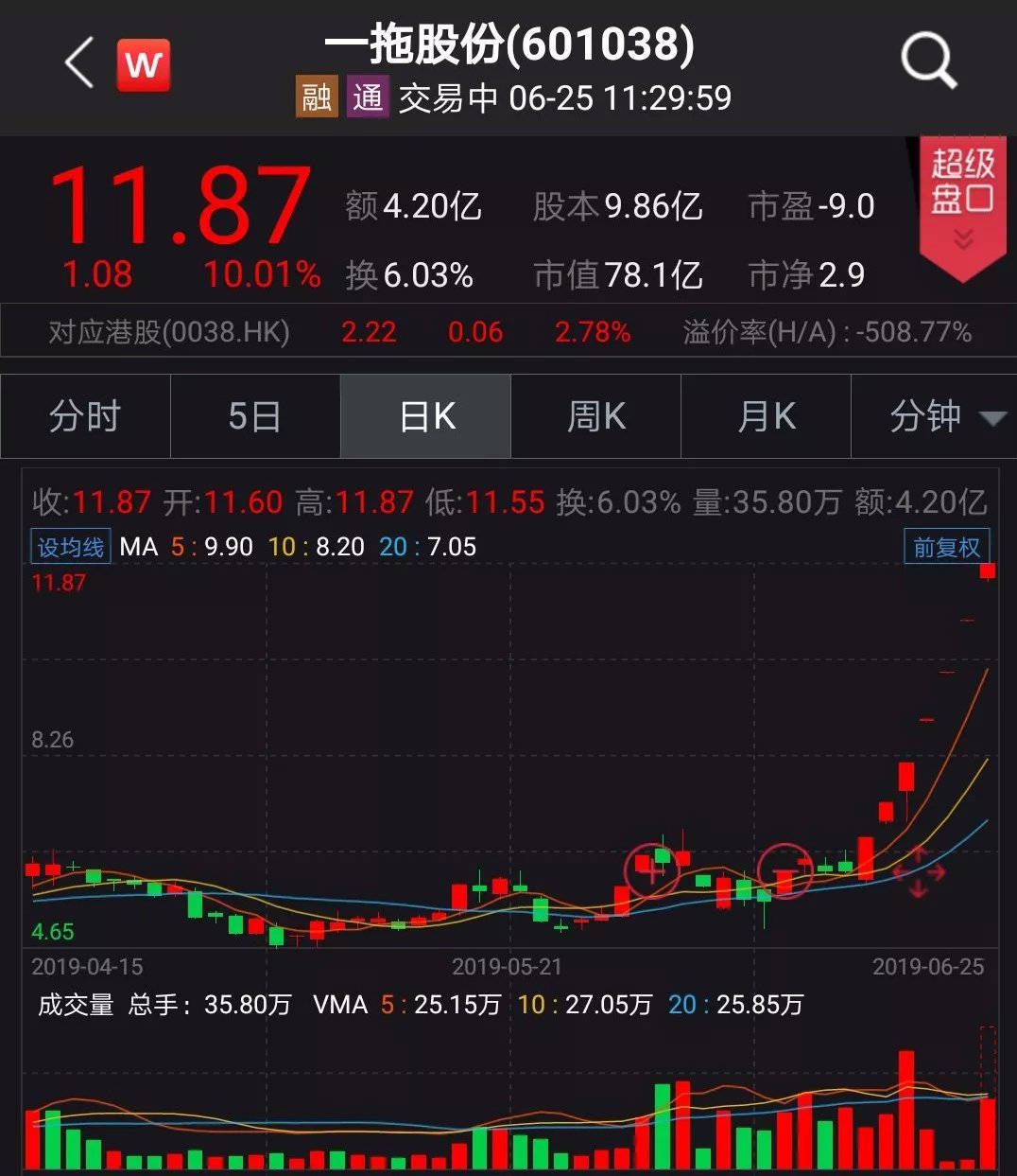 因为被贴上了“垃圾分类股”的标签,6月25日,一拖股份连续第7个交易日涨停。截至上午收盘,一拖股份收报11.87元,涨幅10.01%,成交额为4.2亿元,换手率为6.03%。