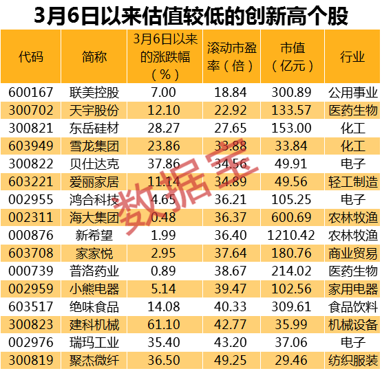 3月6日至今日收盘,490股股价上涨,其中主板有231只,创业板有123只,中小板有136只,主板占比近半,抗跌性更强。中潜股份、日丰股份等三股涨幅超过90%;通光线缆、建科机械等7股涨幅在40%-90%;沪宁股份、蓝英装备、新华制药等44股涨幅在20%-40%。