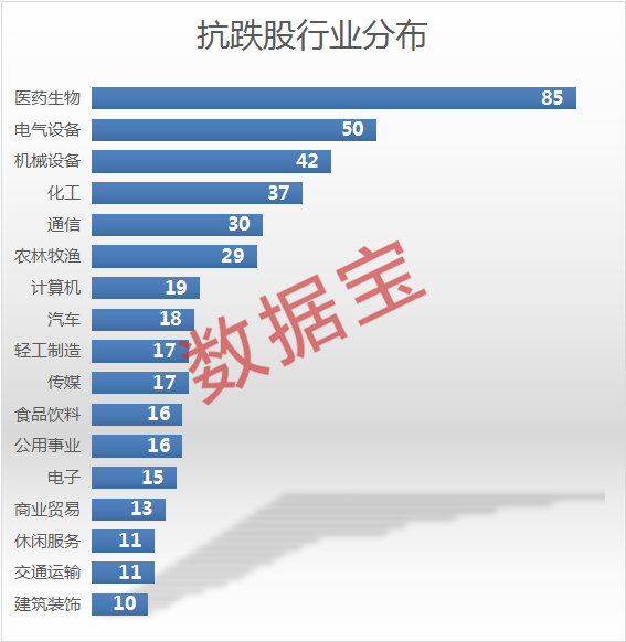 近期,医药生物、电气设备、机械设备行业个股表现最抗跌。