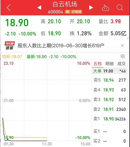 白云机场业绩减速股价跌停