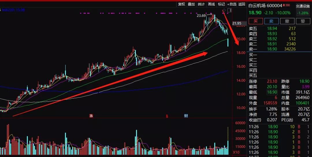 今年以来白云机场是只大牛股,股价涨势凶猛,截至10月10日,今年股价涨幅高达137.45%。而后股价有所股价有所回落,直至今日加速跌停。