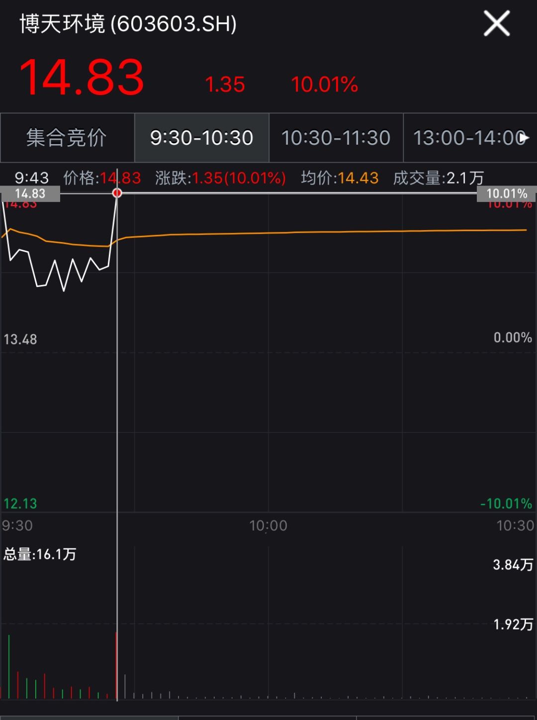 10月18日,博天环境以涨停开盘。随后高开低走,眼看三连板就要化为泡影。但9点43分,一笔2.1万手的大单再次将博天环境封在涨停板上。