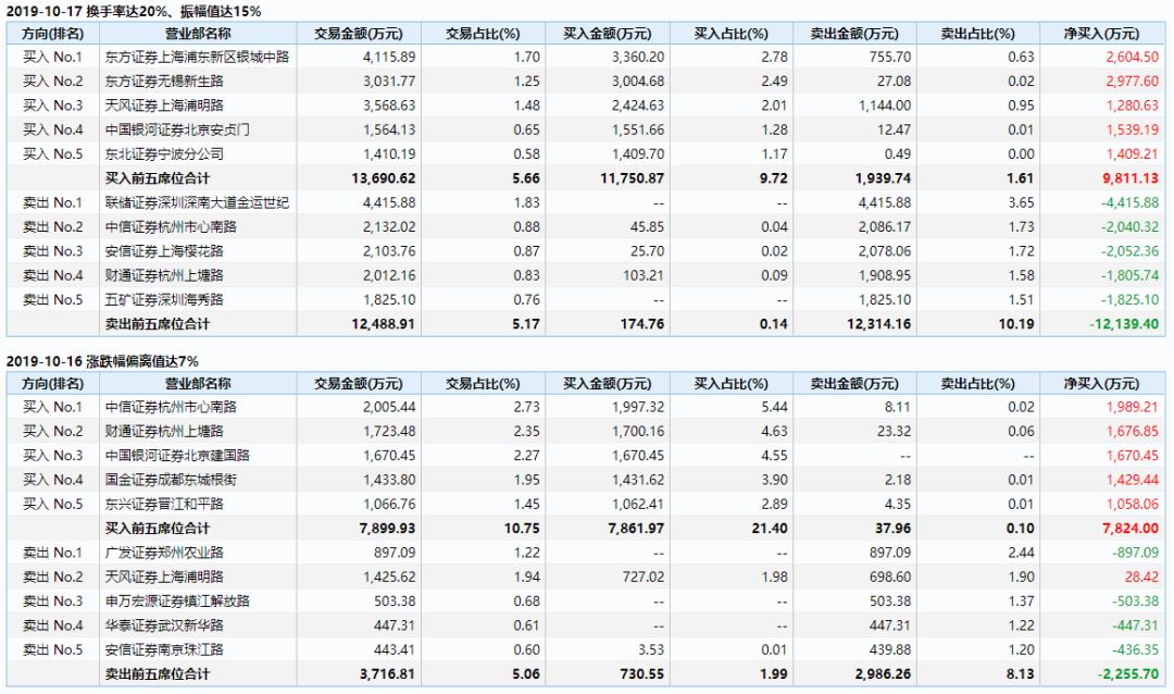 10月16日,任子行涨停,上塘路现身买2席位,共计买入1700万元。而10月17日,任子行大跌6.81%,上塘路现身卖4席位,共计卖出1908万元。