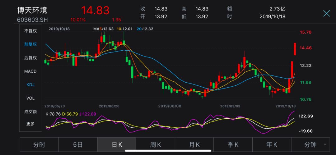 受生态环境部印发《京津冀及周边地区2019-2020年秋冬季大气污染综合治理攻坚行动方案》利好消息的影响,博天环境在10月16日和10月17日连续涨停。