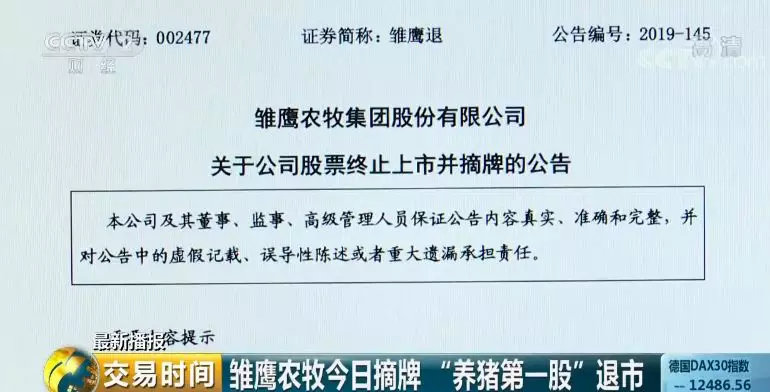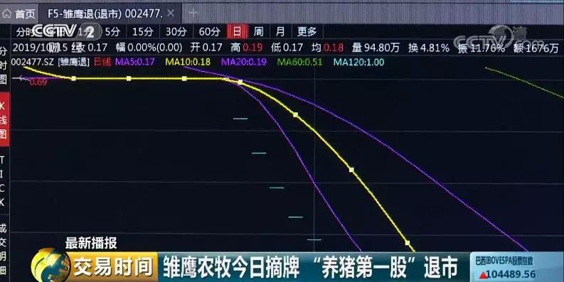 10月15日当晚,雏鹰农牧发布关于公司股票终止上市并摘牌的公告称,公司股票将在10月16日被深交所摘牌,终止上市后,将转入全国中小企业股份转让系统进行股份转让。