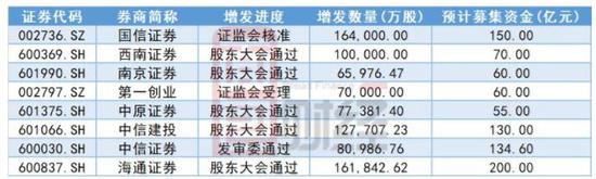 其中,国信证券于8月28日收到中国证监会出具的《关于核准国信证券股份有限公司非公开发行股票的批复》,10月31日中信证券非公开发行获得发审委通过,12月4日,第一创业非公开发行股票申请获得中国证监会受理。除此之外,其余5家券商的定增计划均通过股东大会。