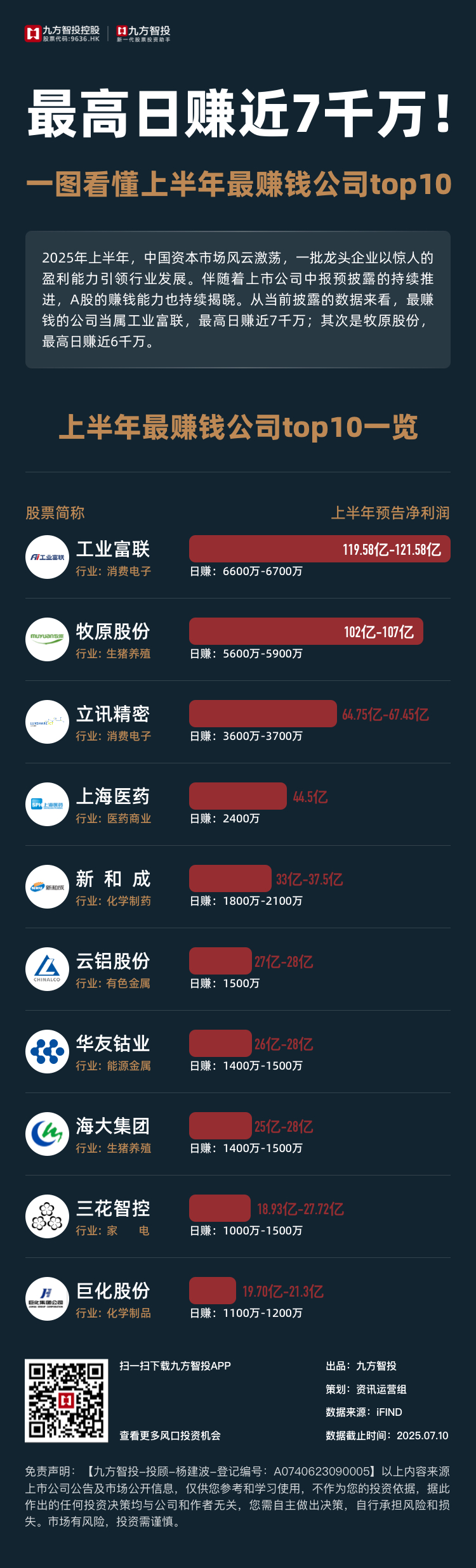 日赚近7千万!一图看懂上半年最赚钱公司Top10