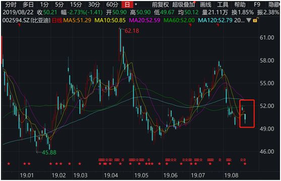 实际上,从8月份以来,比亚迪A股股价开始出现疲软表现,结束了前两月爬坡攀升阶段,短短半个月累计跌幅超12%,市值缩减超130亿元。