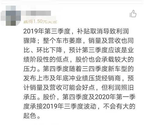 部分投资者指出,随着补贴逐步退出,行业内各公司竞争加剧,市场对各企业进行筛选技术实力强硬的公司才能存活直至市场出清。长期来看,比亚迪优势明显。另有观点认为,当前行业环境悲观,预期三季度盈利大幅下滑,估值下调也属于情理之中,比亚迪目前价格并没有太多安全边际。