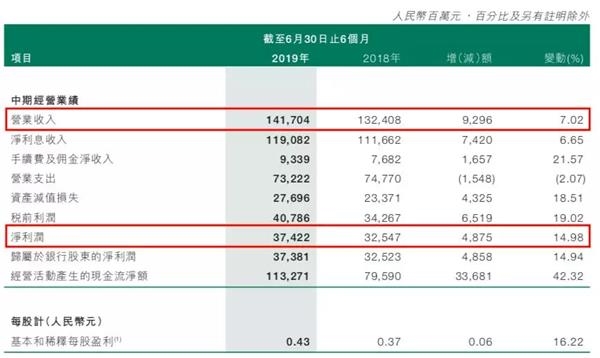 上半年,邮储银行营业收入1417.04亿元,同比增长7.02%;净利润374.22亿元,同比增长14.98%