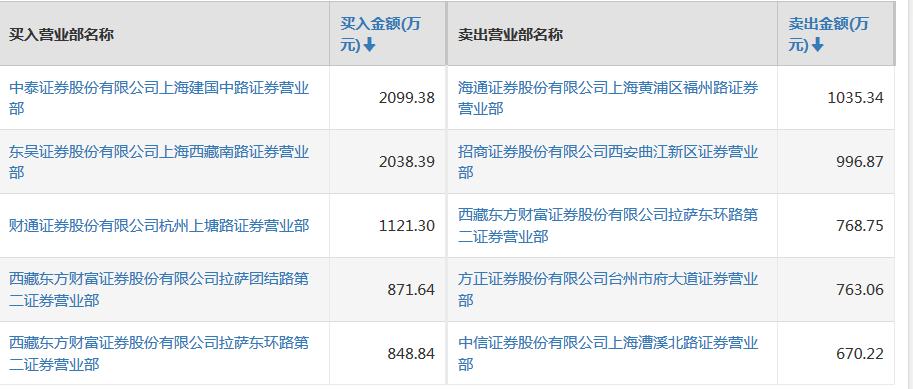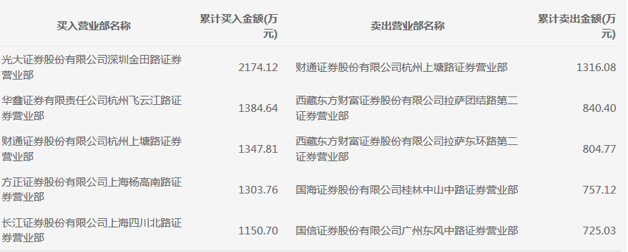 其中,光大证券深圳金田路营业部买入2174亿元,华鑫证券杭州飞云江路营业部、财通证券杭州上塘路营业部、方正证券上海杨高南路营业部、长江证券上海四川北路营业部买入金额均超1000万元。