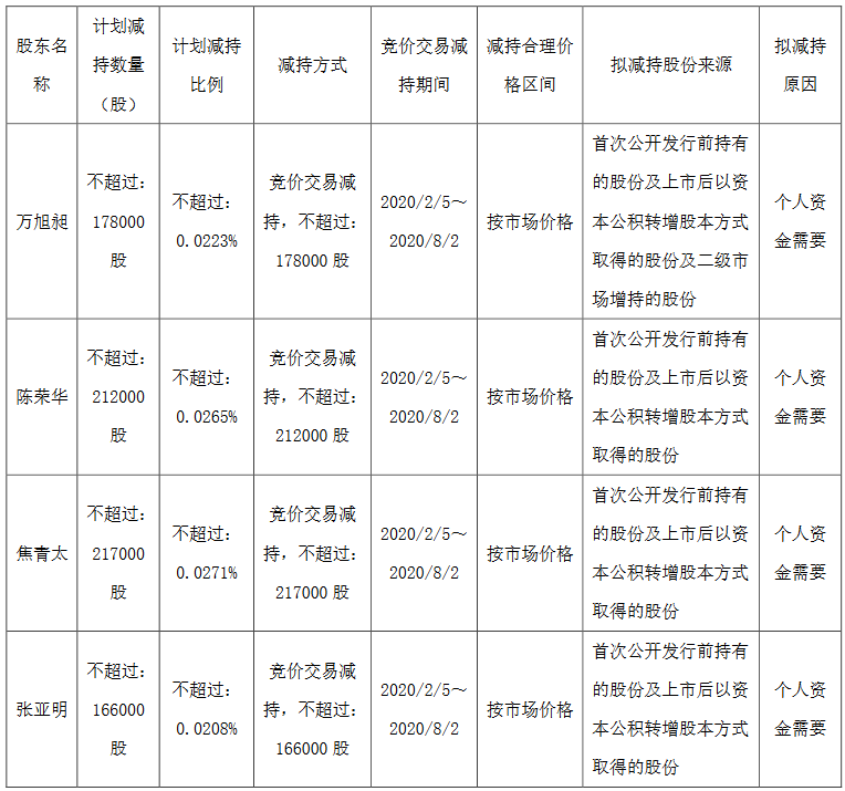 公告称,截至当日,日出东方董事兼总经理万旭昶持有公司股份71.46万股,占公司总股本的0.0893%;高级管理人员陈荣华持有公司股份84.96万股,占公司总股本的0.1062 %;高级管理人员焦青太持有公司股份87.06万股,占公司总股本的0.1088%;高级管理人员张亚明持有公司股份66.48万股,占公司总股本的0.0831%。上述股份来源为公司首次公开发行前持有的股份及上市后以资本公积转增股本方式取得的股份及二级市场增持的股份。