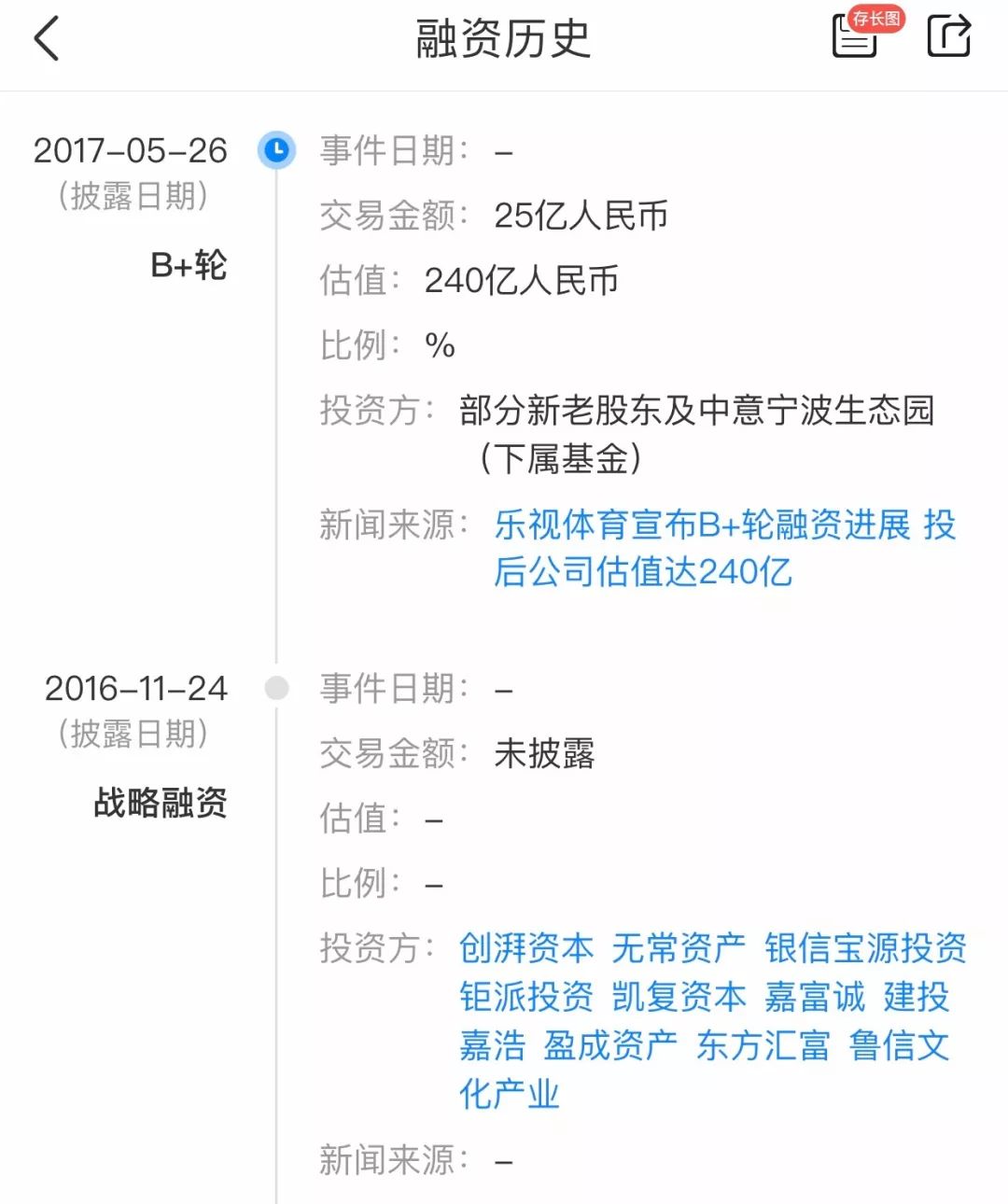 之后2016年11月和2017年5月乐视体育还分别获得了两轮融资。在众多明星和资本的加持下,乐视体育闭眼狂奔。