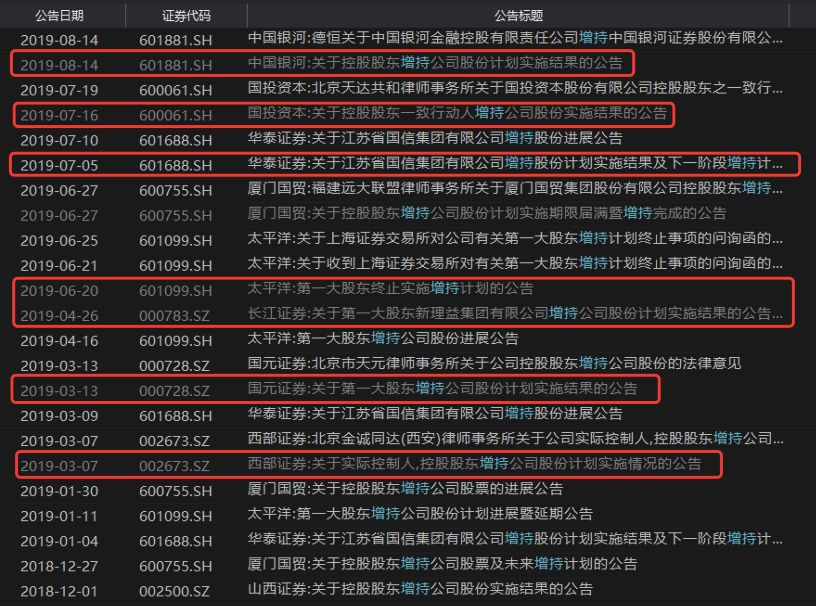 在2019年3月,国元证券和西部证券也相继宣布,公司第一大股东/实际控制人/控股股东的增持计划已经实施完毕。