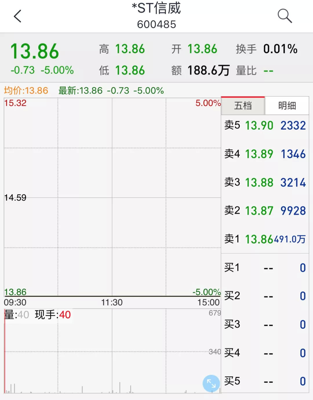 截至今天收盘,*ST信威下跌5%,股价报13.86元。