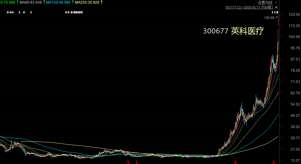 在前三个交易日连续涨停之后,6月17日英科医疗股价继续上扬,今年以来累计涨幅已经接近6倍。