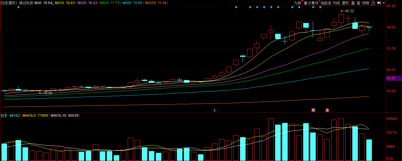 已经退出高管行列的姚文琛不需要披露减持具体数据,但是新浪财经发现姚记科技2019年三季报中姚文琛的持股比例已经从半年报中的11.63%下降至9.95%,这意味着姚文琛在2019年三季度减持约1.68%。