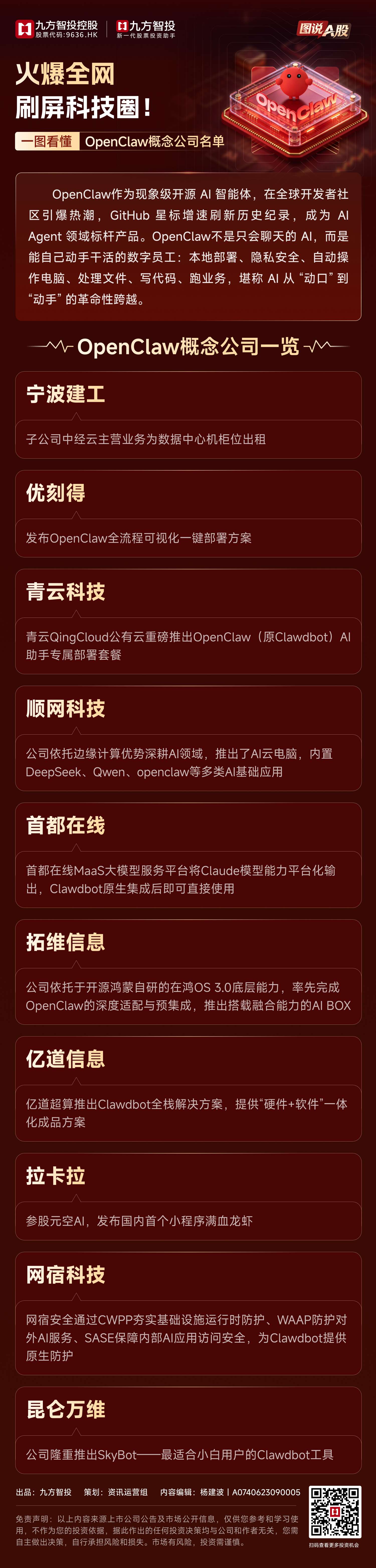 火爆全网 刷屏科技圈!一图看懂OpenClaw概念公司名单