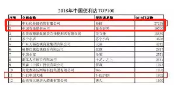 据中国连锁经营协会(CCFA)最新发布的“2018年中国便利店TOP100”榜单中石油旗下的昆仑好客,以1.97万家便利店的数量,位居全国第二;