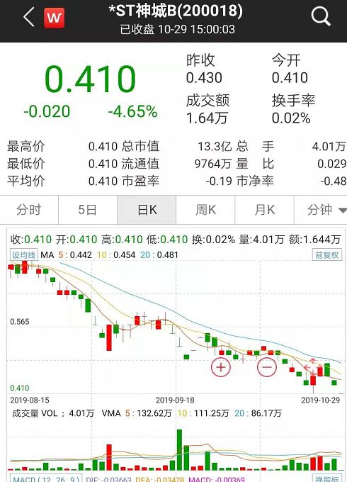 在*ST神城表现低迷的同时,其B股的表现也难如人意。行情数据显示,从今年5月上旬开始,*ST神城B(200018.SZ)股价就持续低于1港元,换算成人民币后也持续低于面值。截至29日收盘,*ST神城B报0.41港元,即便下一交易日涨停,也不可能回到面值。