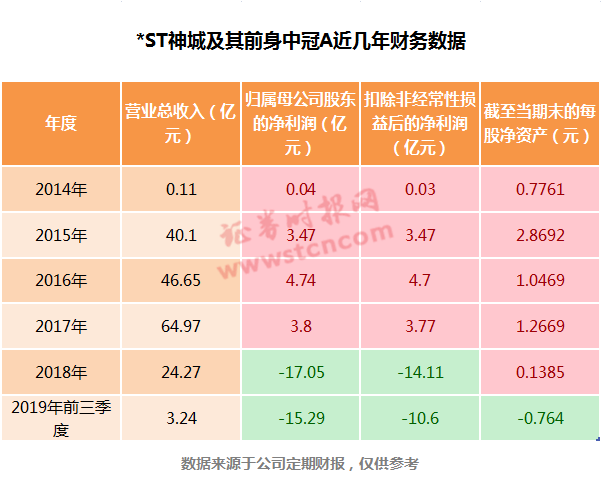 资料显示,*ST神城为2015年通过借壳中冠A上市,如今距离借壳完成只有4年左右时间。