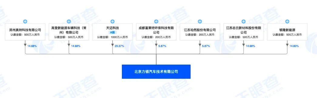 天眼查数据显示,7月13日,北京力银汽车技术有限公司(下称“力银汽车技术”)注册成立,注册资金为3405万元。工商信息显示,公司经营范围包括技术推广、技术转让、技术咨询;专业承包;销售蓄电池、汽车零配件。