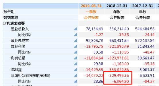 而从公司的盈利来看,2018年飞乐音响业绩更是出现了巨亏。数据显示,2018年公司归母净利润为-32.95亿元,同比下降6064.90%。