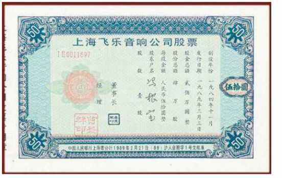 1986年11月,飞乐音响股票被当被国家领导人当做礼物赠送给外宾,成为第一张被外国人拥有的新中国股票。1990年12月19日,飞乐音响股票转至上交所交易,并成为万人追捧的热门股,当时股价最高到过美股600.4元。