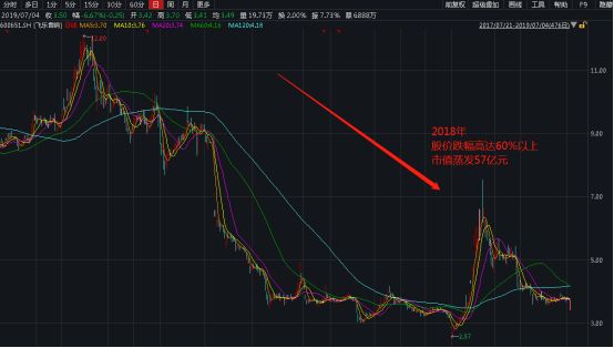 业绩的巨亏也引发了股价的暴跌。仅2018年一年,飞乐音响的股价就从年初的9.1元一路下跌至年底的3.3元,股价跌幅高达63%,市值蒸发超过58亿元。