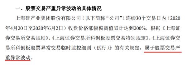 5月6日和5月29日,沪硅产业把公司股票交易波动称作“异常”,现在则升级到“严重异常”。