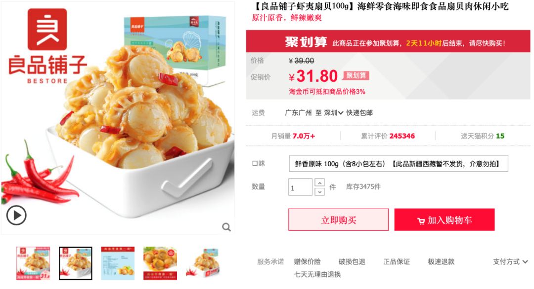 券商中国记者进入李佳琦直播间看到,3月8日妇女节当天,李佳琦共带货30款产品,其中一款名为“良品铺子虾夷扇贝”。
