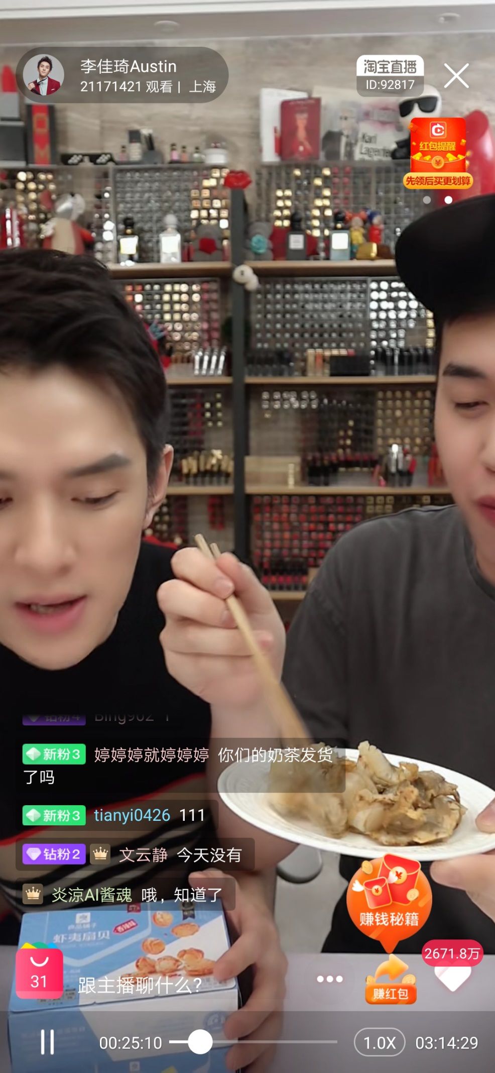 在直播中,李佳琦一边谈论口味,一边直播产品销售情况: