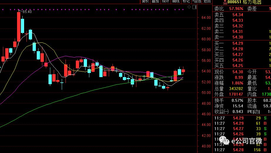 在被贴上卖出标签后,格力近期股价表现已有所回落。自4月29日至6月21日收盘,格力电器期间下跌约5.11%。不过,今日(6月24日)早盘,格力电器似乎并没有受到花旗评级的显著影响,公司股价早间上涨1.86%,收于54.3元/股。