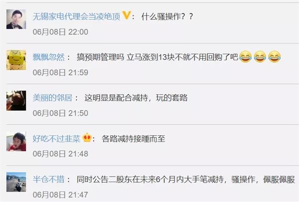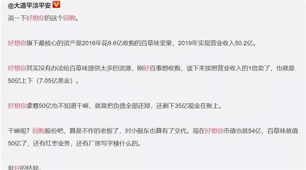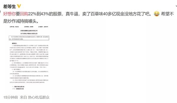 投资者也发评论认为,回购估计就是卖了百草味40多亿现金没地方花了吧