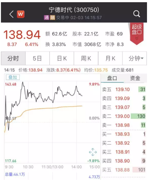 受疫情影响,今日A股开市后,创业板指开盘跌超8%,但宁德时代作为创业板的“市值第一股”却逆势上涨,盘中一度冲击涨停。