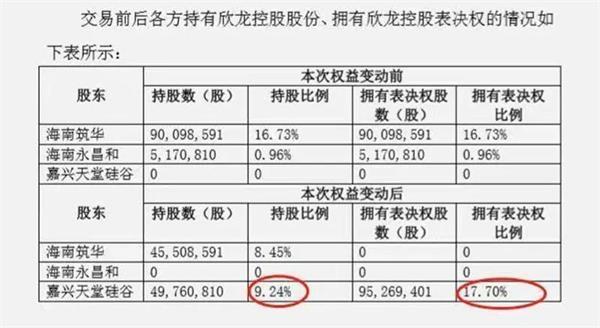 与此同时,海南筑华的一致行动人海南永昌与嘉兴天堂硅谷于2019年12月21日签署了《关于欣龙控股(集团)股份有限公司之股份转让协议》,约定通过大宗交易的方式将海南永昌和所持有的欣龙控股517万股无限售条件流通股股份转让给嘉兴天堂硅谷。